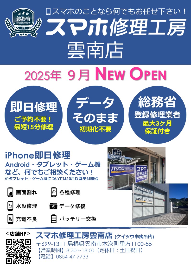 2025年9月1日よりスマホ修理工房のサービスを開始いたしました。